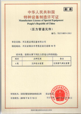 主導(dǎo)產(chǎn)品切斷式煤氣調(diào)壓器通過河北省經(jīng)濟(jì)委員會(huì)、省標(biāo)準(zhǔn)計(jì)量局認(rèn)可,獲得采用國(guó)際準(zhǔn)認(rèn)可證書